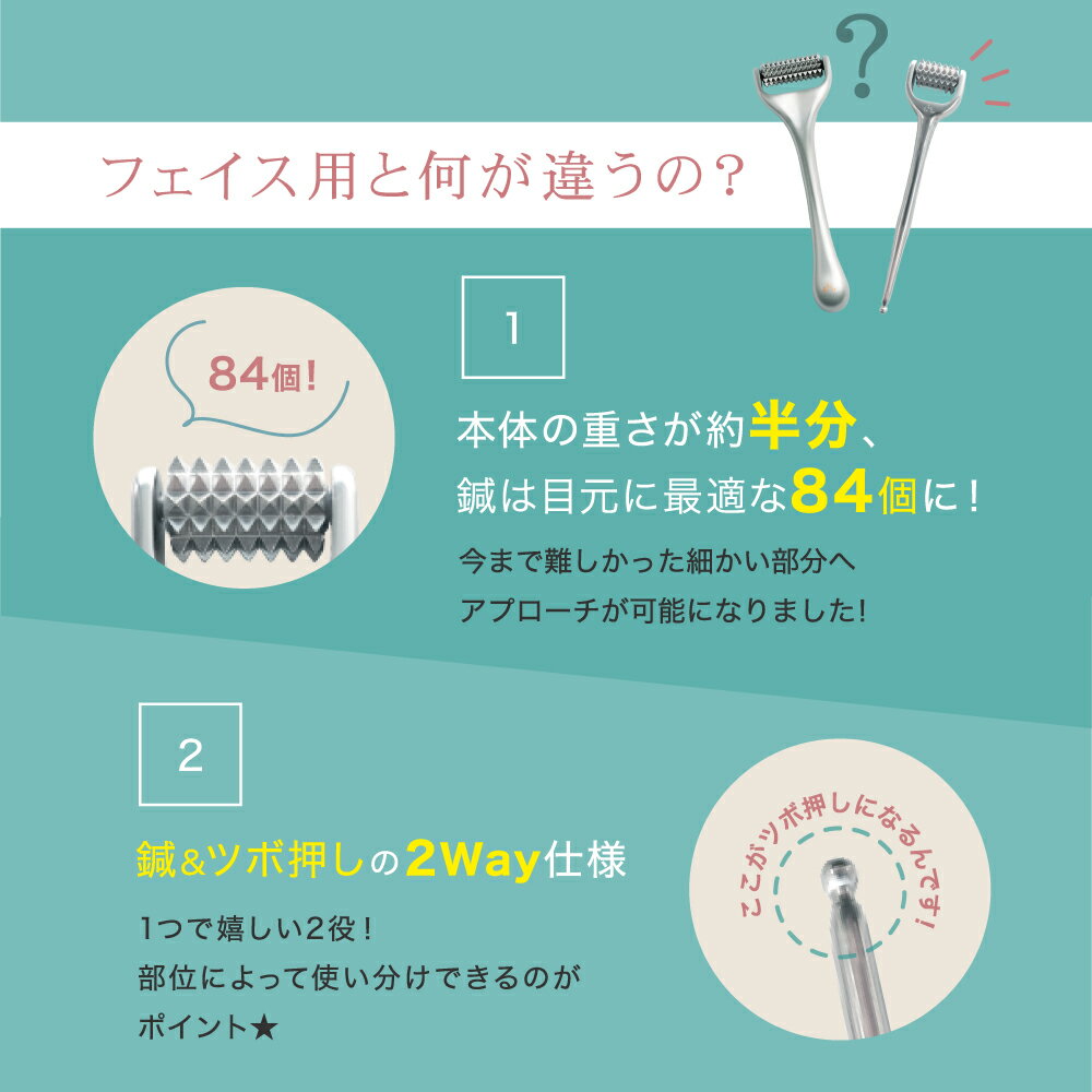 ■目じり・眉間・口もとなどの細部に しっかり働きかけるコンパクトサイズ! 1回転で84個の鍼が細かい箇所にアプローチ! 反対側はツボ押しスティック仕様だから一石二鳥! ★