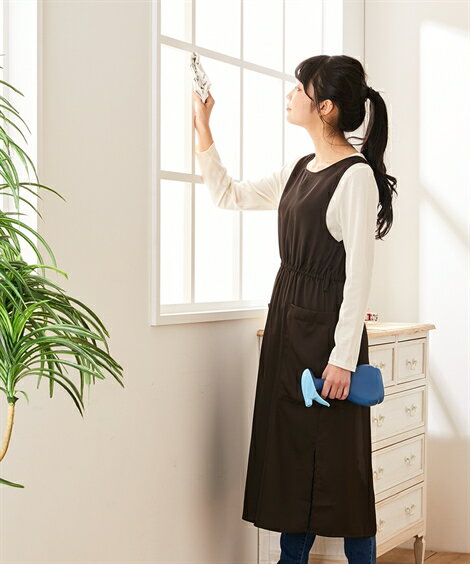 急な来客、宅急便、家事、子育てなど様々なシーンに対応!ループ付きなのでタオルもつけられ、家事中に便利!しわになりにくい素材だから洗濯後のお手入れもラクラク。