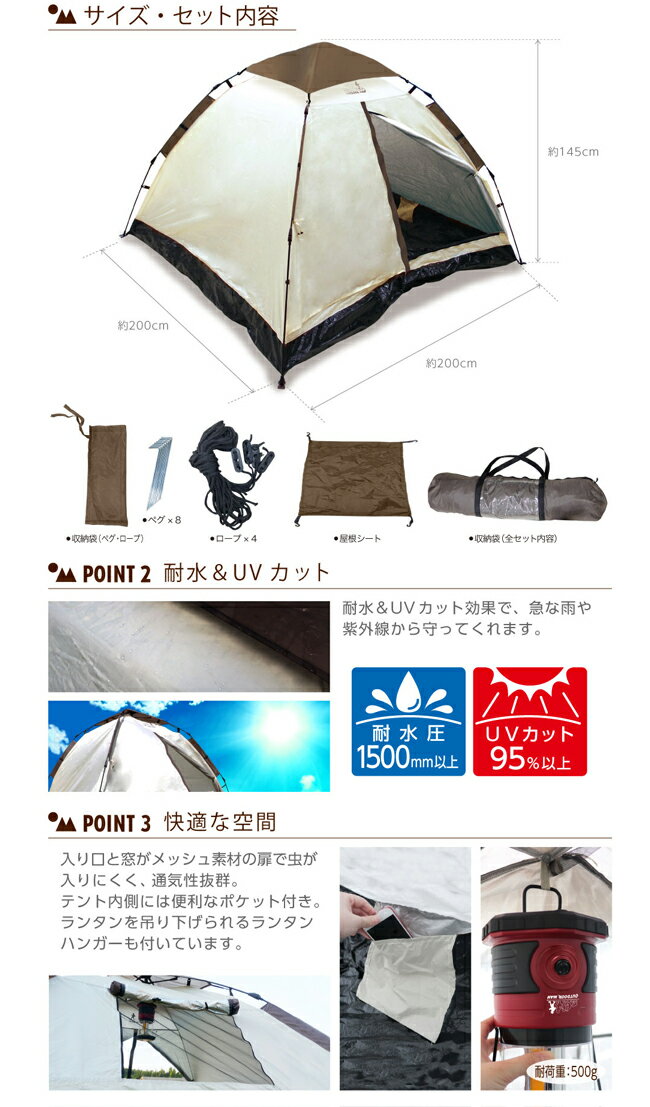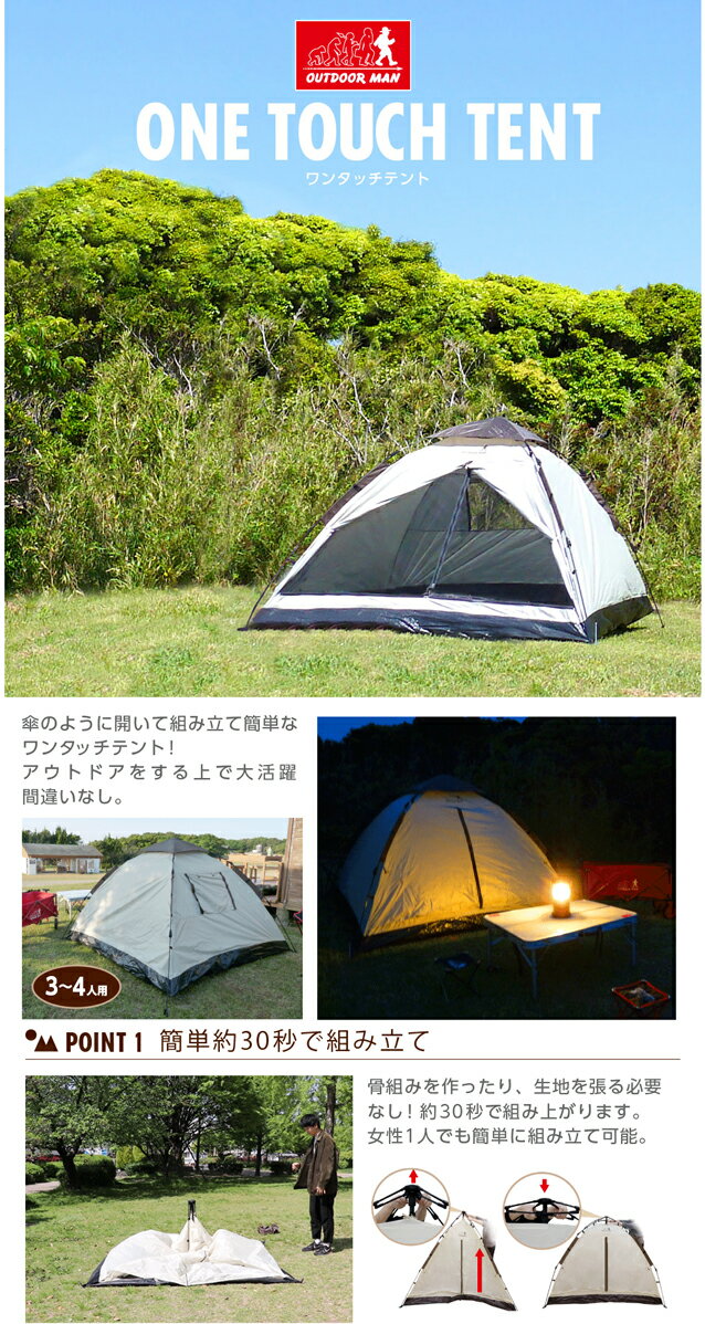 テント ワンタッチ ワンタッチテント 3〜4人用 OUTDOOR MAN最新のワンタッチ機能でさらに設営が簡単!! 耐水 UVカット キャンプ 海 【送料無料(北海道、沖縄、離島は適用外)】