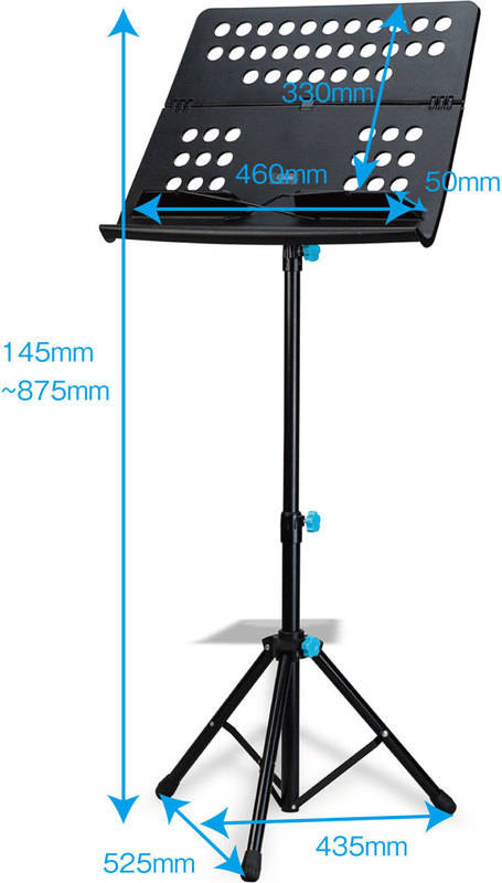 POINT便利なパーティション付きの譜面部持ち運びに便利な専用バッグ付き特別に補強したスチールパイプを採用アルミダイキャスト製の接合部を採用し高い耐久性と安定性を実現丈夫で軽量なポリアミド製の譜面部人間工学に基づいた、各調整部のハンドル防水と防錆のための静電焼付塗装Spec譜面部サイズ:460x400x50mmサイズ:525x435x145~875mm重量:1.9kg折りたたみ時サイズ(バッグ外寸):500x250x95mm譜面部有効サイズ(上段):330x425x40mm譜面部有効サイズ(下段):40x450x50mm