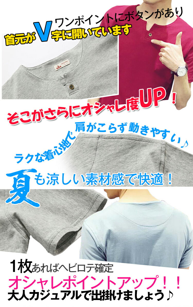 ◆シンプルな無地のTシャツです ◆どんなアウターとも合わせやすいです ◆ワンポイントにボタンがあり首元がV字に開いています ◆夏も涼しい素材感で快適です ◆重ね着にもピッタリで春夏秋冬着られます ※かなり細めの縫製ですので、2サイズ以上、上のサイズのご選択をおすすめ致します。