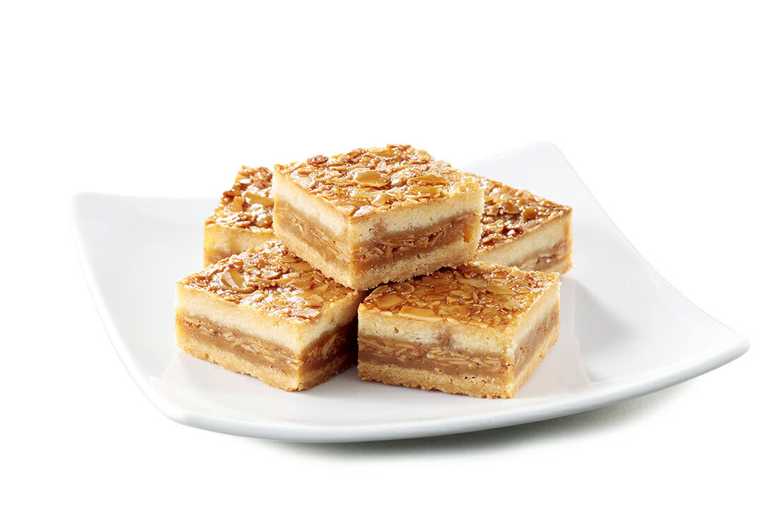 横浜のお土産に 香ばしくローストしたアーモンドに自家製生キャラメルを絡め、特製のクッキー生地でサンドし、じっくり焼き上げました。