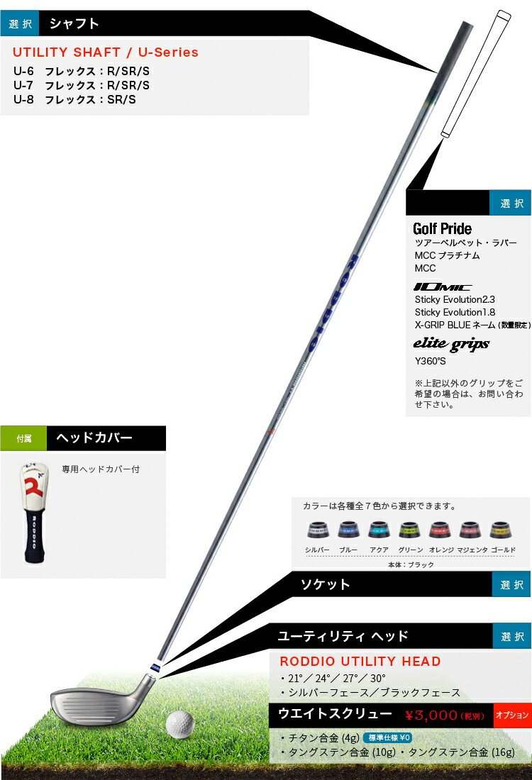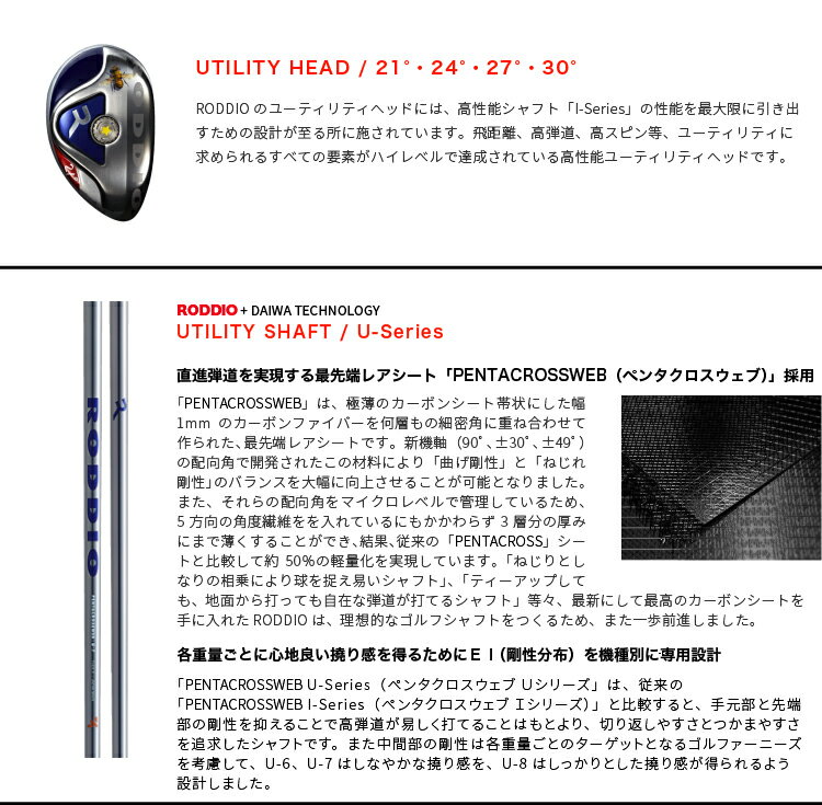 RODDIO UTILITY×Series-U シャフト/21°24°27°30°/U-6/U-7/U-8/ ■ロッディオ ユーティリティ×ユーシリーズシャフトの組み合わせ2016年新発売 カスタムクラブ 2016年7月9日発売のUシリーズ。